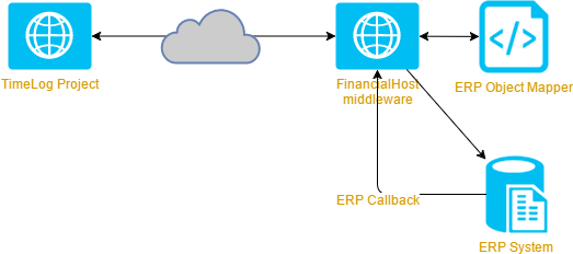 For integrations that is fully integrated with server install, TimeLog has developed a middleware software to provide the necessary API endpoints for the best integration experience. This middleware is called the "FinancialHost" .